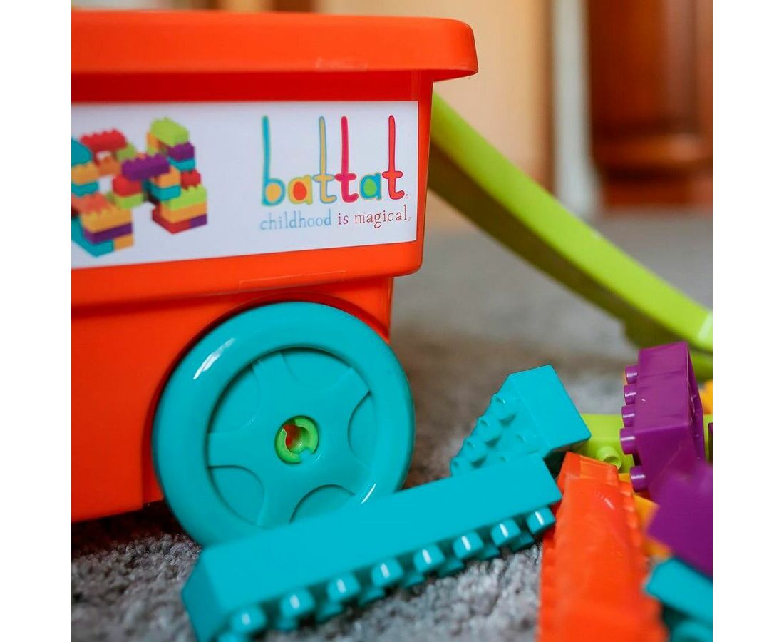 Познакомьтесь с идеальной системой строительных блоков в виде тележки с конструктором от бренда BATTAT для малышей! Воплощайте фантазии в реальность с помощью больших, ломаных кирпичиков, а затем складывайте их в вагончик для удобного хранения. Этот набор разработан специально для малышей, ведь их легко держать, складывать и разбирать. Классическая строительная игра предлагает детям раннее знакомство с концепциями STEM, а также здоровые дозы свободы и творчества.