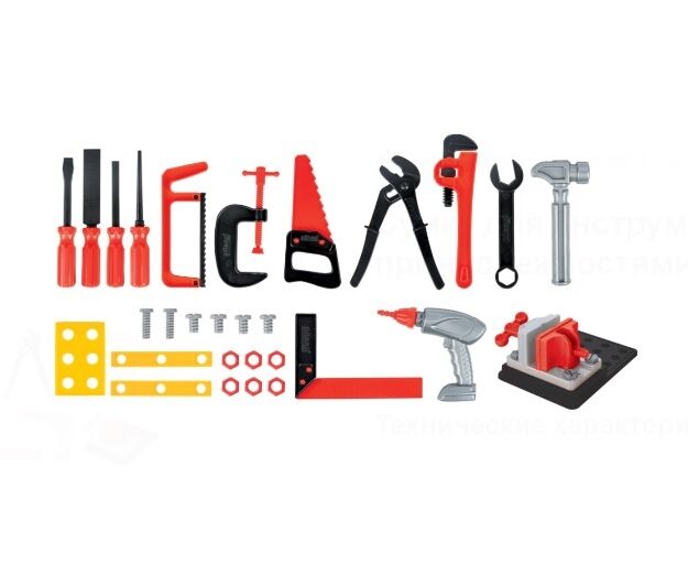 В данном наборе есть молоток, пила, отвертки и многое другое. Кроме того, в наборе имеются планки, в которые можно завинтить болты. Все инструменты изготовлены из безопасного для ребенка пластика и обладают малым весом. С этим набором мальчик сможет придумать интересные сюжетно-ролевые игры и замечательно провести время.